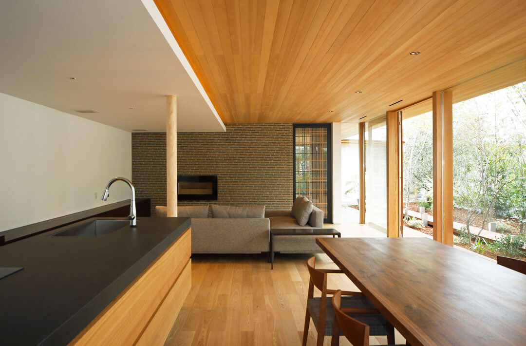 リビングのガラス1枚向こう側にある樹木も建築に不可欠な自然素材なのです。